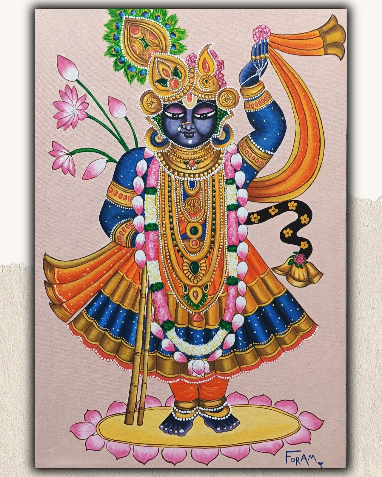 It’s a pure painting of shree nath ji made with devotion, shree nathji’s face is highlight of the paining , calmness vibrancy of aura faith buy this painting and take a kripa prashad of shree nath ji
