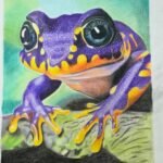 Realism and Fantasy: While the anatomy of the frog is grounded in realism, the electric color palette gives it a fantastical, “neon” quality.