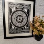 A symmetrical mandala framed with lotus elements, symbolizing purity, rebirth, and enlightenment. This artwork carries a timeless elegance and meditative quality.